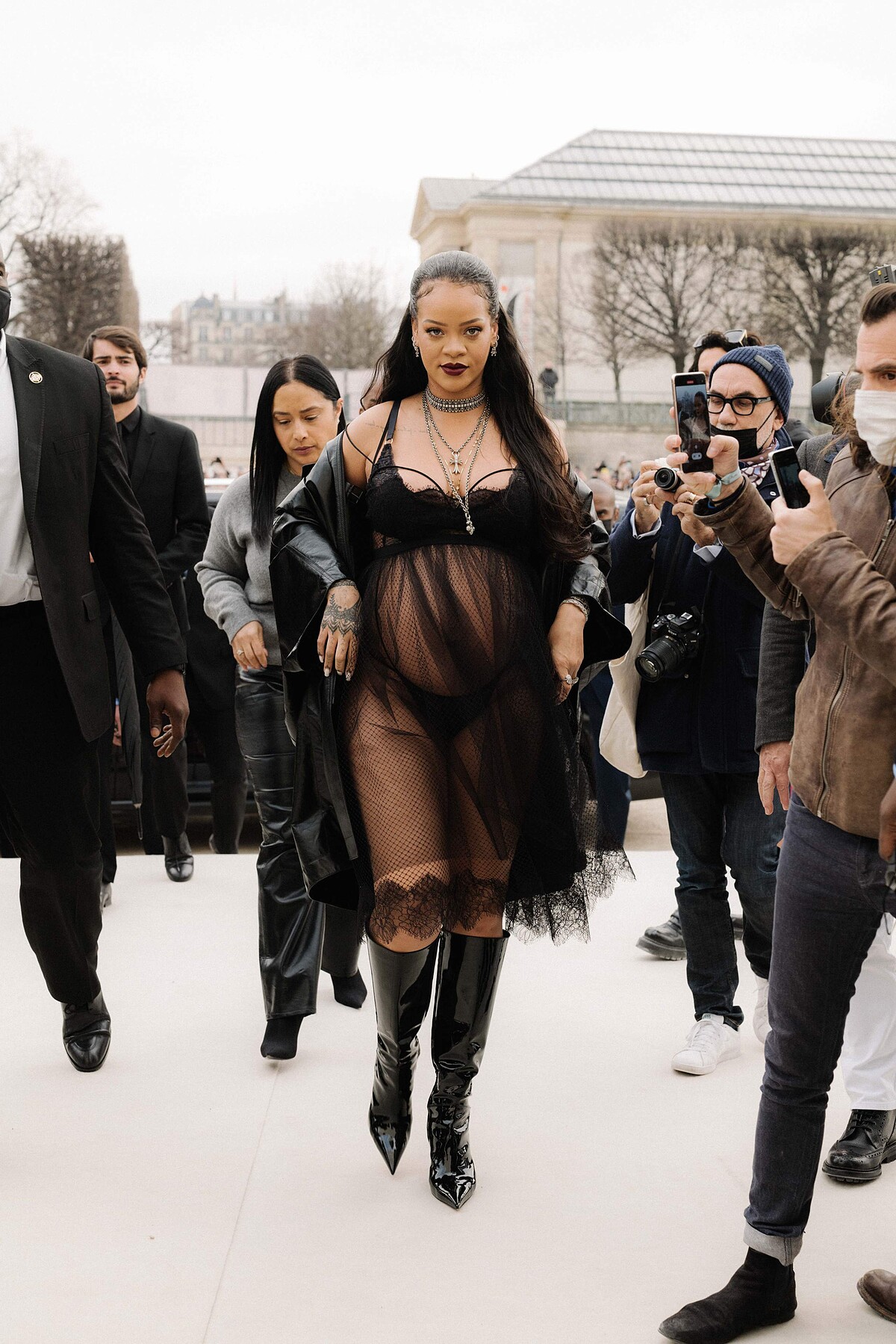 2022二月初,蕾哈娜向大家宣佈自己懷有身孕的好消息,令許多粉絲紛紛送上誠心祝福。而在這一段時間以來,Rihanna依舊馬不停蹄地拓展自己的事業,期間出席的自家品牌的新店開幕活動,在接受《時人People》訪問時大方坦言:「如果我覺得有一點胖,那又怎樣?肚子裡面有一個嬰兒耶!」(If I feel a little chubby, it’s like, whatever! It’s a baby!)不論是言語,或是穿搭方面,蕾哈娜皆貫徹了做自己的原則。