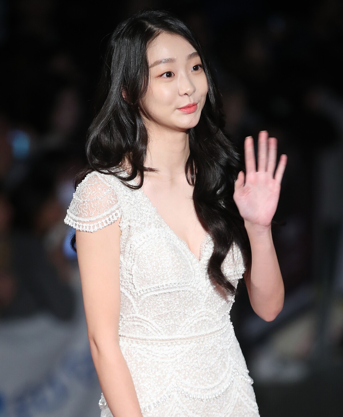 首部電影作品《魔女首部曲:誕生》好評不斷,金多美成為第55界大鐘獎的最佳女新人得主,受邀出席頒獎典禮時,換上白色蕾絲刺繡長禮服,性感的低胸剪裁設計,再次展現金多美的好身材。