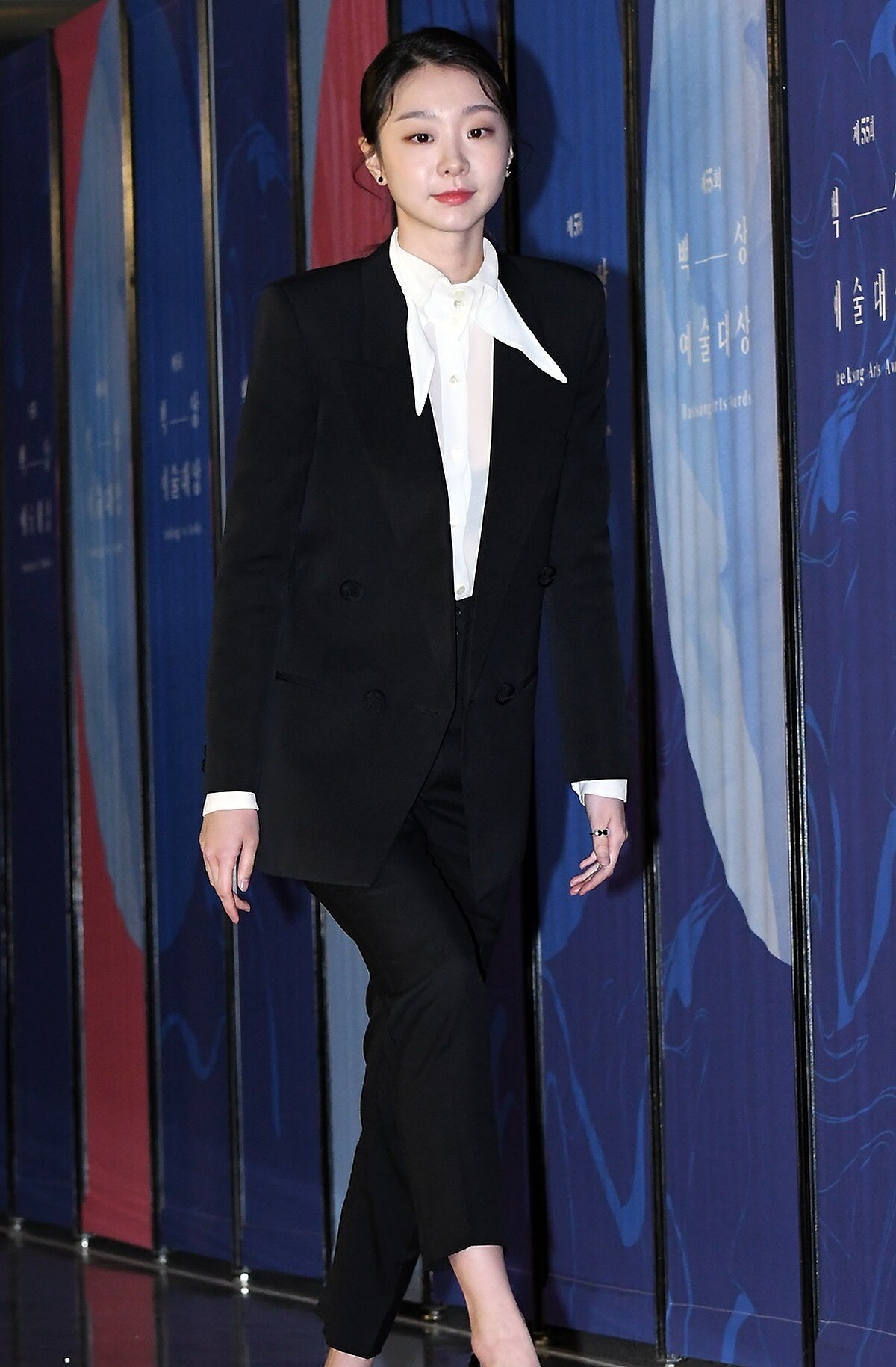 在2019年的百想藝術大獎上,金多美展現前所未見的紅毯造型,選擇幹練的黑色正裝出席,正裝裡的大領白色襯衫,為平凡的套裝增添亮點。