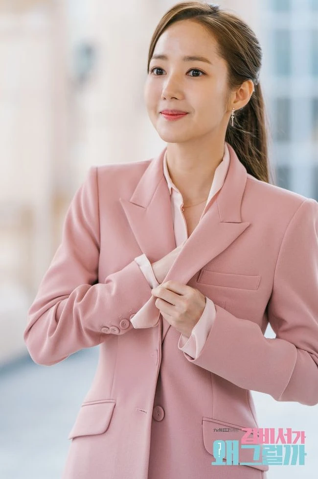 擔任朴敘俊的秘書,朴敏英在劇中大多以襯衫和及膝窄裙為主要造型,像是全白色的襯衫搭窄裙、薰衣草紫襯衫配水藍色半裙,展現身為秘書的專業度與優雅風範,偶爾也會加上西裝外套,不過下身仍以短裙為主要穿著。