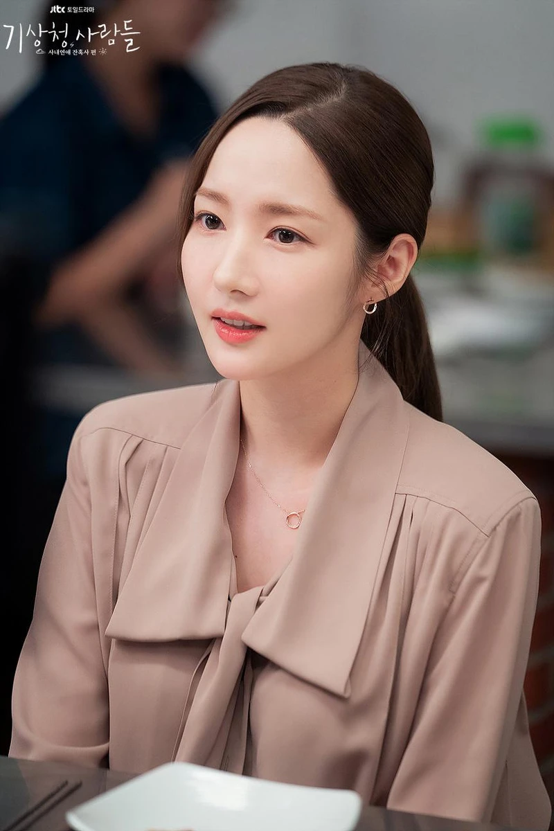 自從和朴敘俊演出《金秘書為何那樣》、接著與金材昱合作《她的私生活》,在《氣象廳的人們:社內戀愛殘酷史篇》攜手宋江共譜辦公室戀情,部部都是跟職場相關的韓劇,朴敏英因此受封OL專業戶,不過雖然都是辦公室穿搭,但每一部戲的造型卻不完全一樣。