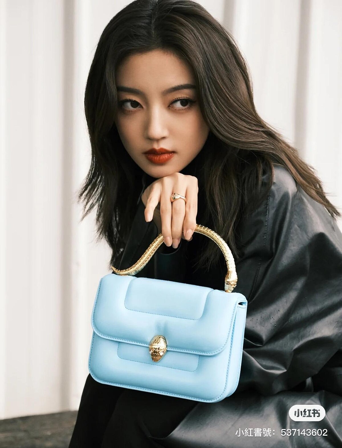 眼光獨具的何瑞賢,對寶格麗的珠寶工藝深深著迷,愛包自然也少不了它們家,這款由印花女王Mary Katrantzou從寶格麗Heritage典藏系列的古董作品Serpenti獲得靈感,運用柔軟光滑的小羊皮革,搭配空前未有的金屬提把,為了滿足不同使用需求,還能將提把取下,改以金屬鍊帶作為斜背包使用。