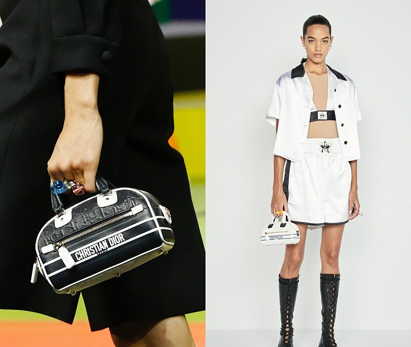 以小牛皮打造的保齡球手提包,本季多了迷你尺寸,包身保留標誌性的Christian Dior書腰式設計,推出亮橘色、海礁藍、經典黑、白等色選。
