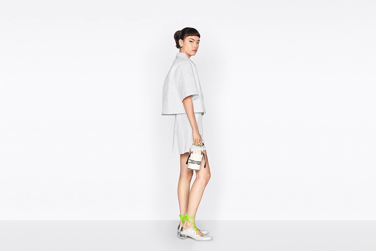 在Dior Vibe系列中,首推以小牛皮製作的水桶包款,可愛小巧的水桶包,綴以Christian Dior標誌,連抽繩設計也做得相當細緻,可以選擇搭配手提把,或是以長背帶斜背使用。