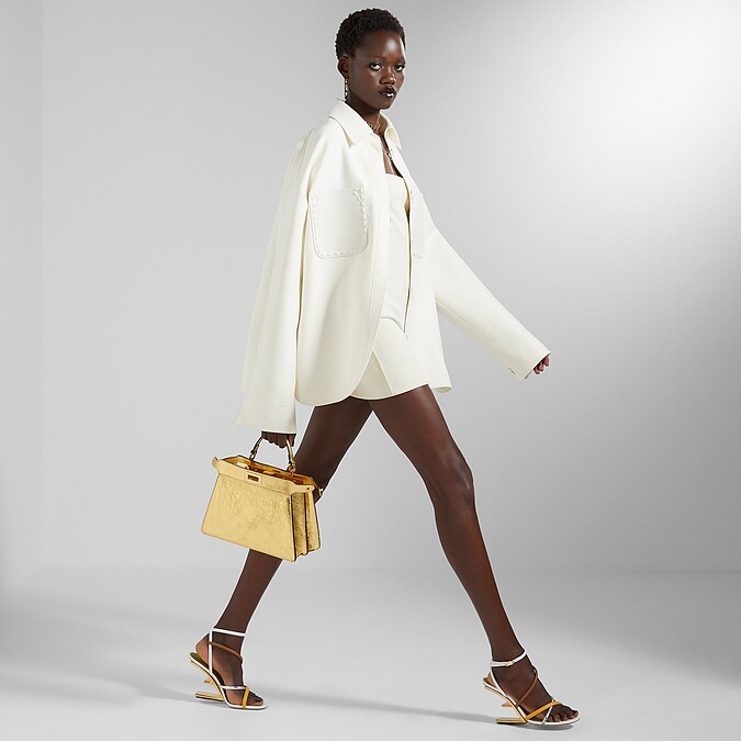 Fendi 白色襯衫式夾克能夠簡單穿出下半身消失的性感與質感造型,簡單搭雙有造型感的跟鞋就很時髦。