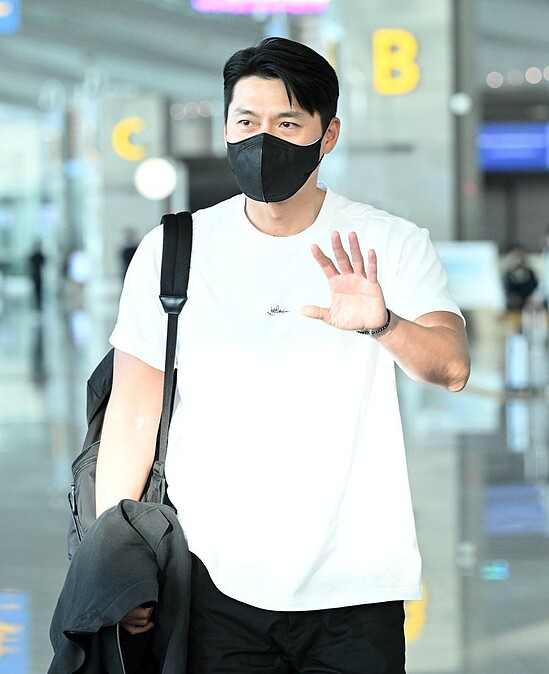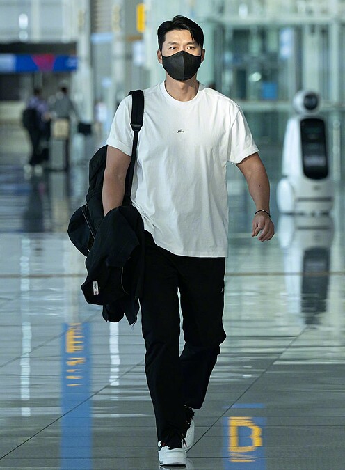 低調的孫藝珍、玄彬,在仁川機場現身時,為了不引發太大的喧嘩,貼心一前一後通關,首先登場的玄彬歐巴,帥氣如你我想像,寬如太平洋的肩膀,單肩背著一個黑色後背包,就好像把全世界背在他身上,身為Loro Piana品牌大使的玄彬,身上的白色Logo T,正是品牌與藤原浩推出的最新聯名系列,同樣是聯名系列的外套則因為天氣炎熱改拿在手上,最吸睛的除了歐巴的帥氣英姿,腳上的那雙GD X Nike Air Force1也是亮點,想不到歐巴私下也是潮男一枚。