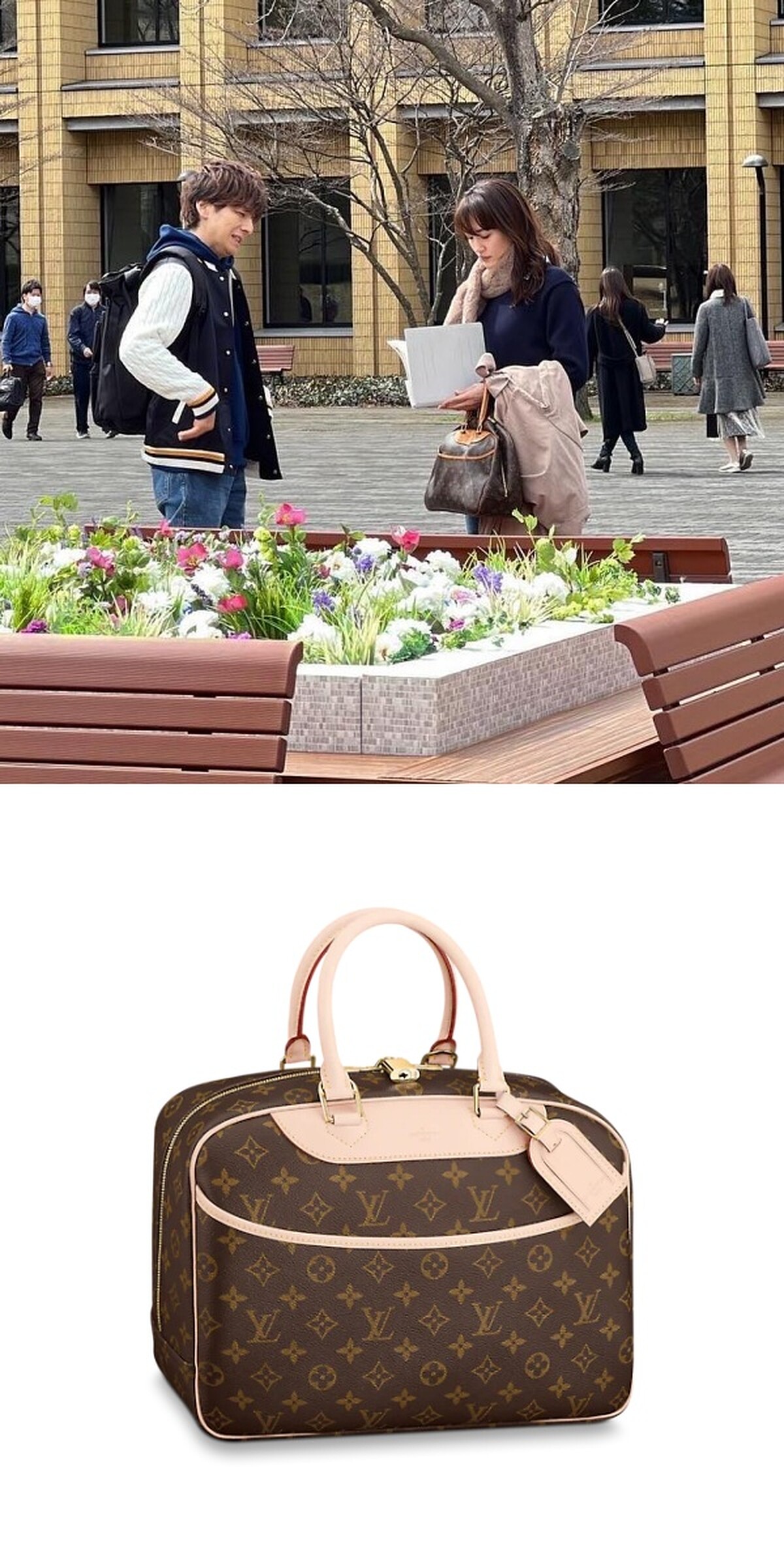 另一款陪伴劍持麗子大學時期亮相的大包則是來自Louis Vuitton,保齡球包的包型,與前一款Tom Ford肩背包相比,較為率性,也較符合大學生的青春氣質。細看劇照綾瀨遙臂上所拎的LV老花包,皮革提把是只有透過時間累積才會呈現出的橘棕色調,若是偏好帶著古著韻味的你,可以到二手包市場挖挖寶。