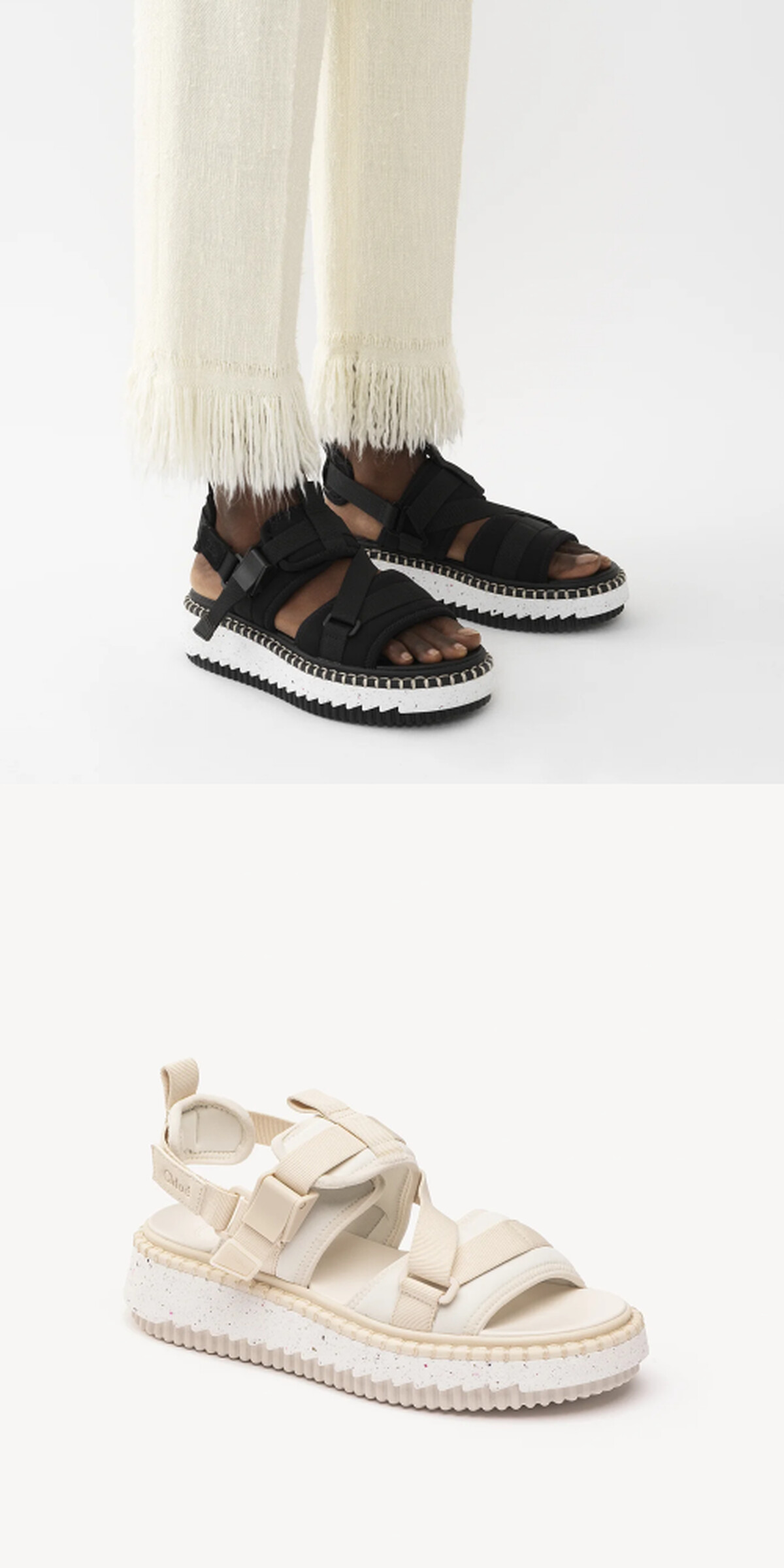 在Gabi上任Chloé創意總監之後,帶著細沙顆粒的環保鞋底成為品牌鞋款最具辨識度的一大特色。延續Gabi鍾愛的手工、民俗感元素,可清楚看見Lilli厚底涼鞋的撞色縫線細節,選擇帶有運動風格涼鞋版型,兼具柔美與個性氣質。