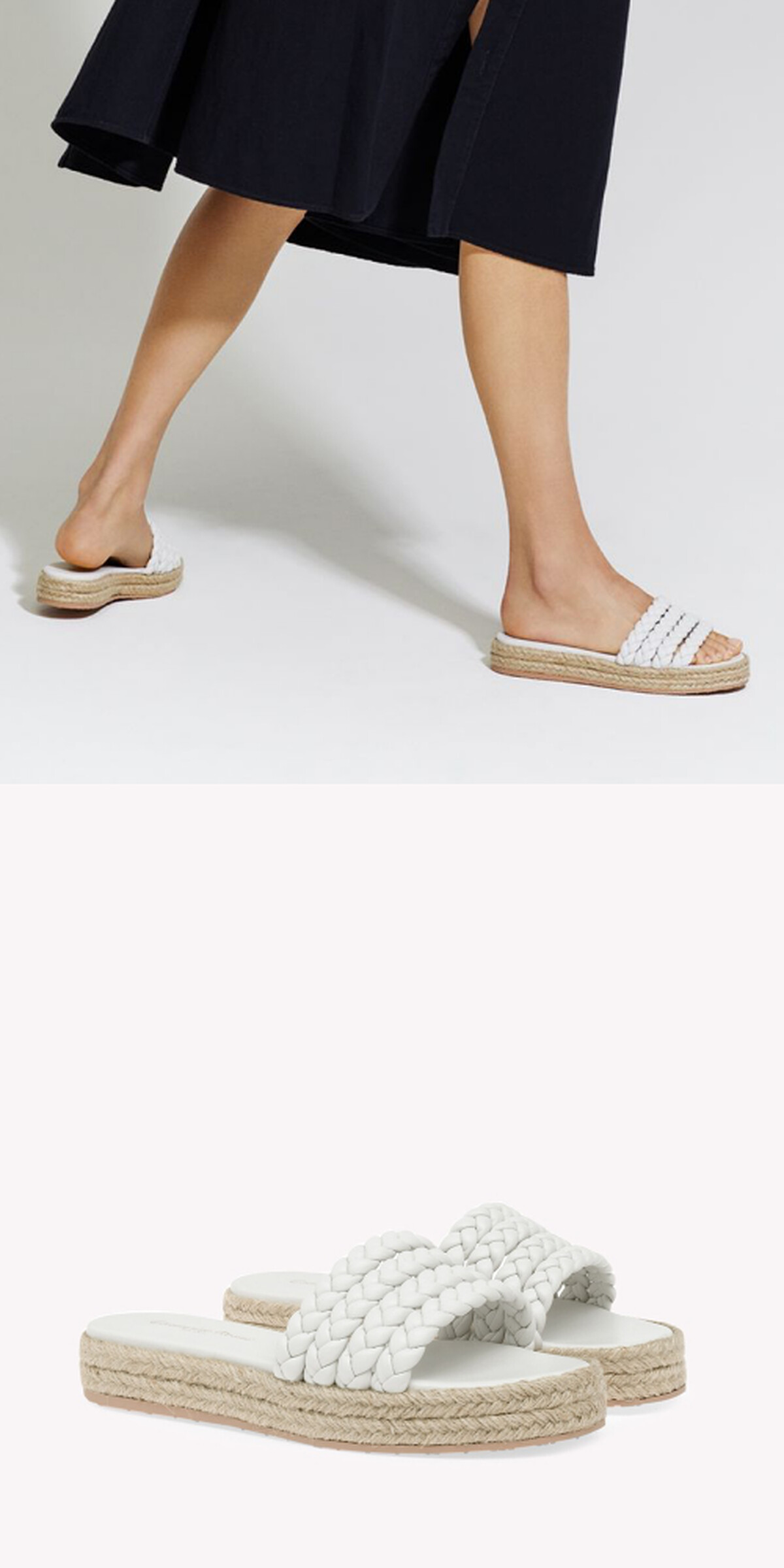 選用最柔軟的那帕皮質(Nappa),並編織出四條辮子、組合為鞋面設計,帶著愜意的波西米亞風情,配上草編鞋底,完全就是夏日穿搭的必備單品!