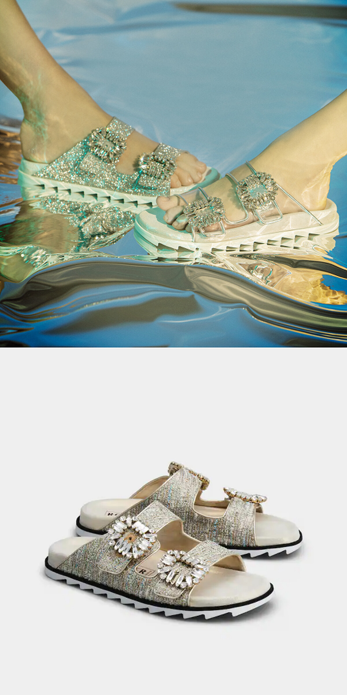 自2017年春夏所推出的Slidy Viv’涼鞋,閃閃惹人愛的雙方釦令鞋奴們難以抗拒,也因為鑽釦的加持,雖然是休閒的拖鞋輪廓,卻有著細緻的時髦氣質,不論是到餐廳約會,抑或是到海邊放鬆,皆毫無違和感。