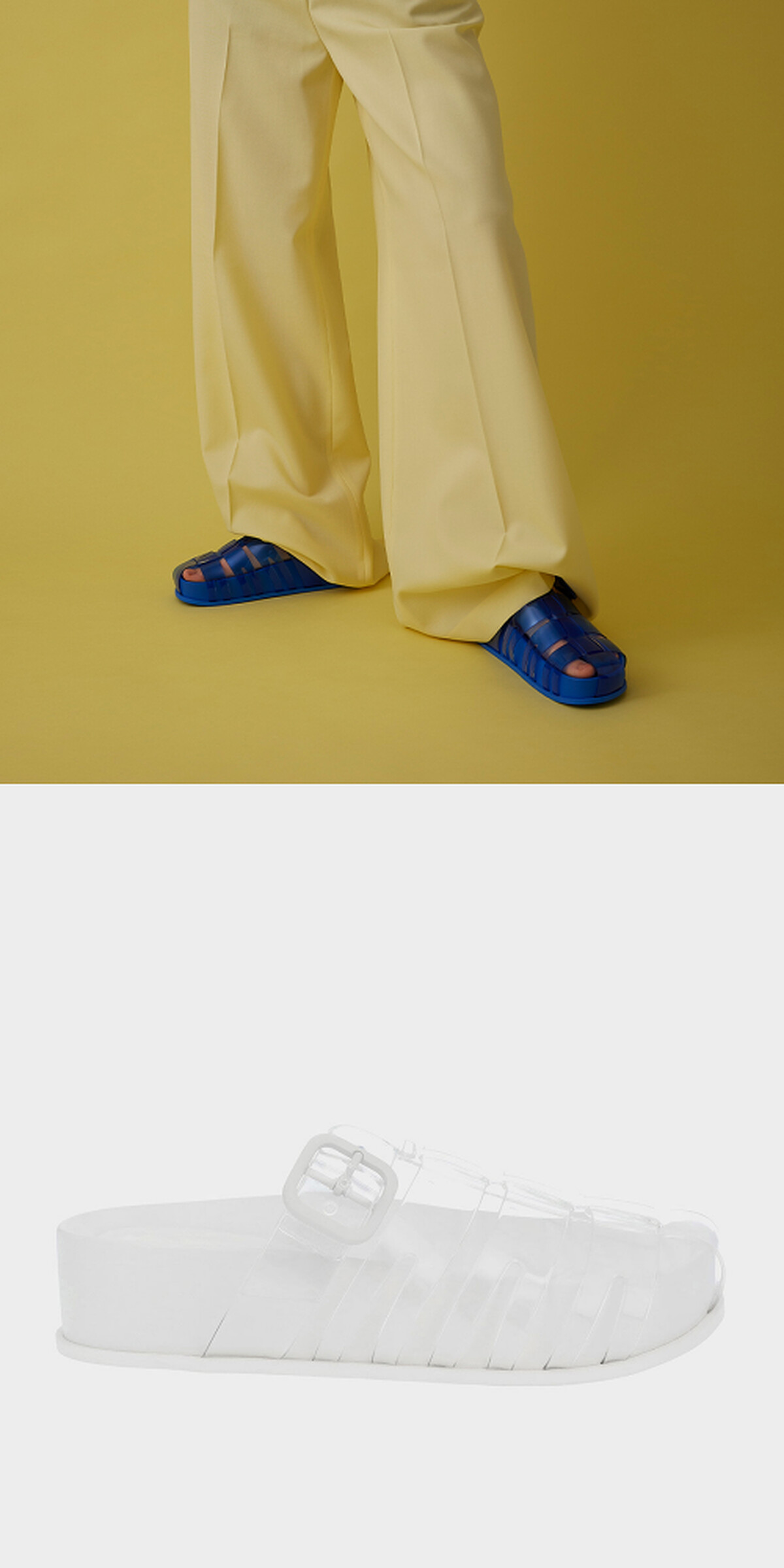 夏天除了草編,透視感也是相當熱門的元素。想要有涼鞋的透氣,卻又羞於露出全部的趾頭?編輯推薦可以選擇漁夫涼鞋的款式,小CK最新推出的果凍編織拖鞋便結合了上述兩大特點,微微的厚底細節還能修飾穿搭比例。