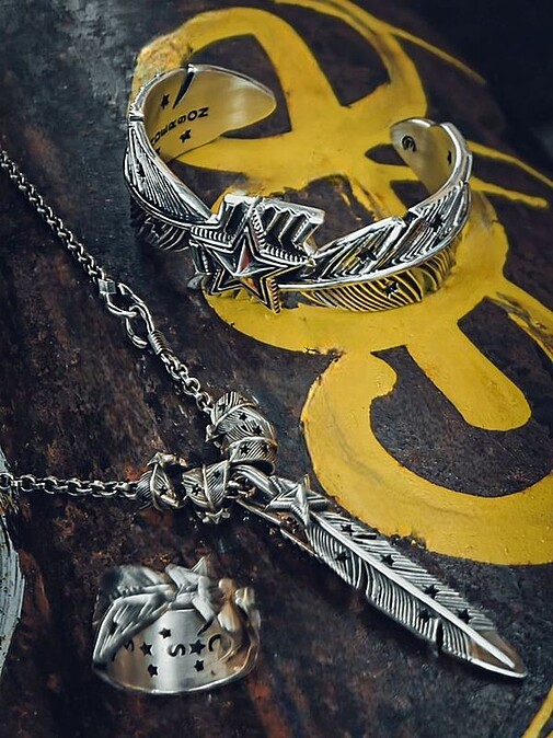 其中,從 2020 年至今的羽毛系列,總算迎來了完整全系列,尤其愛好印地安銀飾風格的時尚迷,對於羽毛總有著強烈的熱情。而被玩家譽為「正宗印地安血統」的羽毛系列,彰顯手工製作與原創性,設計師 CODY SANDERSON 先生最初打造的「全球限量款」羽毛系列,僅有數十名的鬼罕數量,甫登場即完售。之後更催生出「星空系列羽毛」,接著,同系列的羽毛手環也帶來標誌性警長星與厚實細膩的民族工藝底蘊。納瓦霍警長星羽毛全系列包括警長星弓箭羽、左右旋空星羽、迷你左右旋捲羽及風之刃…,限量販售與精緻工藝製作,成為銀飾收藏家的首選之一。