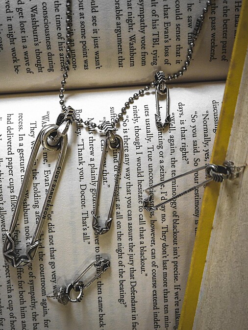 另外,從西部左輪手槍的子彈衍生的設計,旋開式上蓋的浮雕與彈尖的五角星造型象徵設計師捍衛信仰的精神,其中能夠單獨當成西部領帶,或與其他墜飾組合,擁有不同的搭配方式。