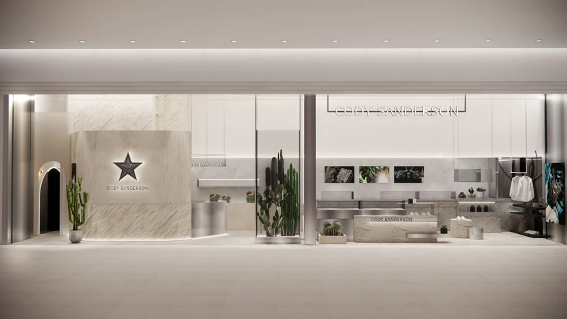 店舖空間運用獨特的泥作砂色建築、旱地植株裝飾並揉合手作工業感,讓人走入彷彿置身位於新墨西哥州的聖塔菲。納瓦霍獨有的部落民族文化結合銀飾設計是 CODY SANDERSON 深受全球型人歡迎的原因,就連 BlackPink Lisa、BIGBANG G-Dragon…等人都是品牌粉絲。