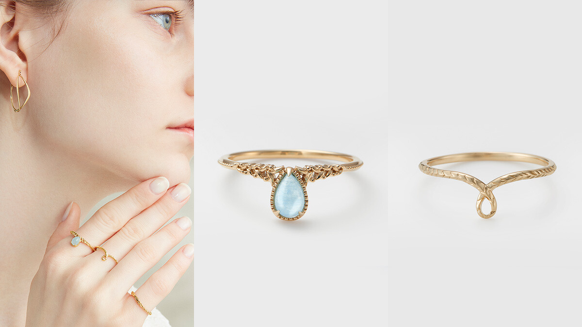 鑲嵌如幸運淚滴形狀海水藍寶石的Happy tears戒指,有著吸引好運與更加幸福的象徵,疊戴上以絲帶與無限圖形設計、有著結緣之意的fate戒指之後,則有著幸運永恆、好運無限大的寓意。