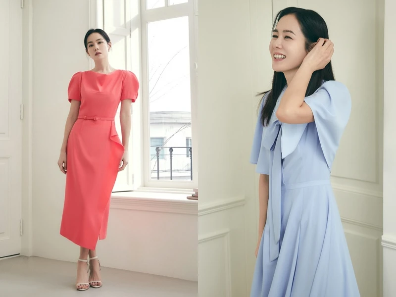 迎接熱情如火的春夏季,適時為造型增添色彩,為自己注入活力、青春氣息,像孫藝珍身上的珊瑚紅不對稱洋裝、天空藍蝴蝶領結洋裝,都是春夏穿搭的好選擇,不論出外旅行、日常上班都合適。