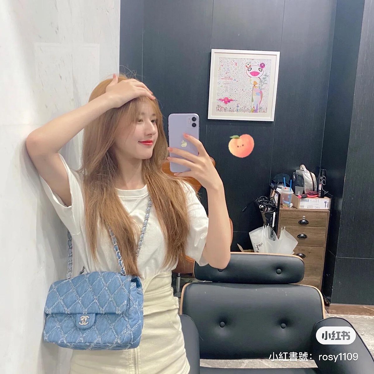 一上架就在短時間被搶購一空的丹寧系列,趙露思購入了最經典的口蓋包款,可以選擇斜背、肩背方式攜帶,加上大容量的包身,想裝什麼都不是問題。