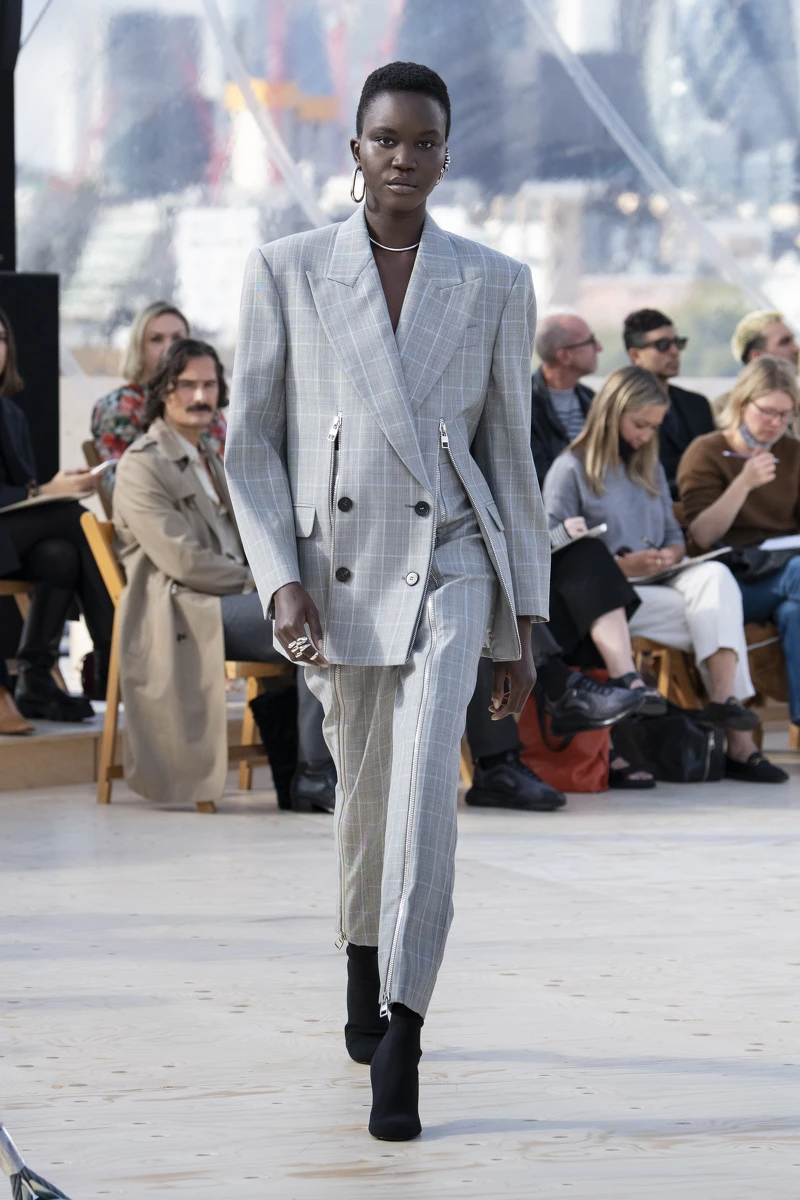 Alexander McQueen 將品牌標誌性的解構手法融入西裝設計,搭配中性風格的西裝套裝,特殊的設計細節讓整體造型看起來不會過於拘謹,反而添入更多的時髦感。