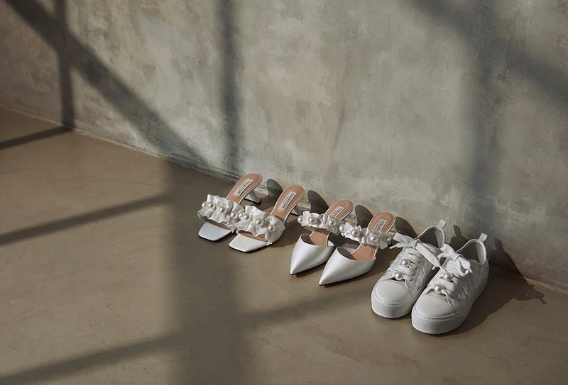 CHARLES & KEITH 今夏帶來的 Blythe 婚鞋系列,鞋款以時髦優雅的珍珠妝點細節,簡約的質感白色調與絲綢般的鞋面交織成高雅的各式鞋款。