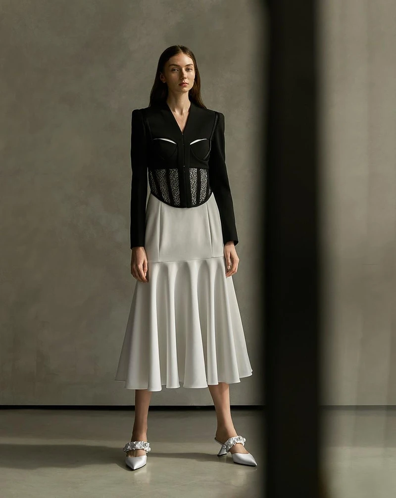接著看到,系列推出的兩款穆勒跟鞋設計,珍珠與緞面的結合讓造型更具典雅氣質,共有方頭與尖頭的楦頭選擇,是中的貓跟設計也讓鞋款更具實用性,即便日常穿著也很合適。