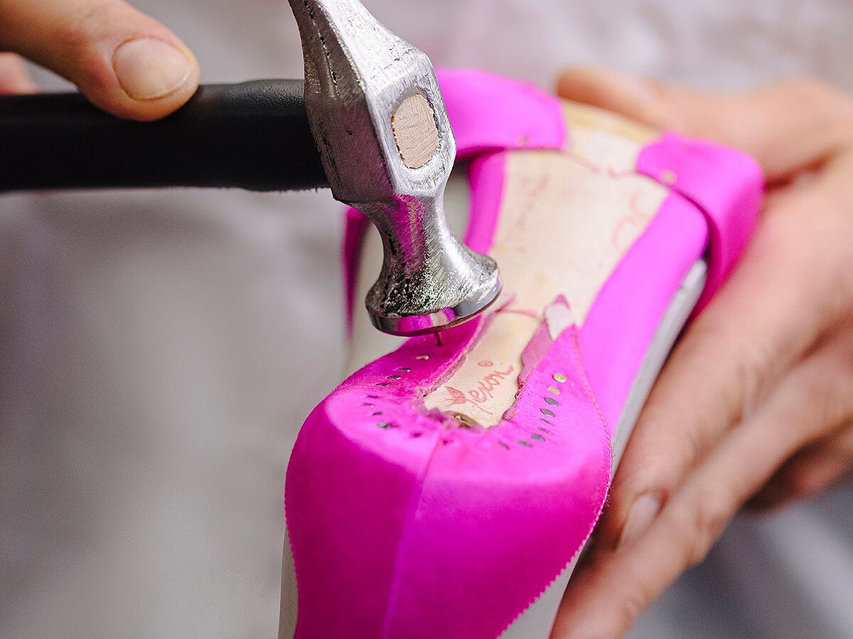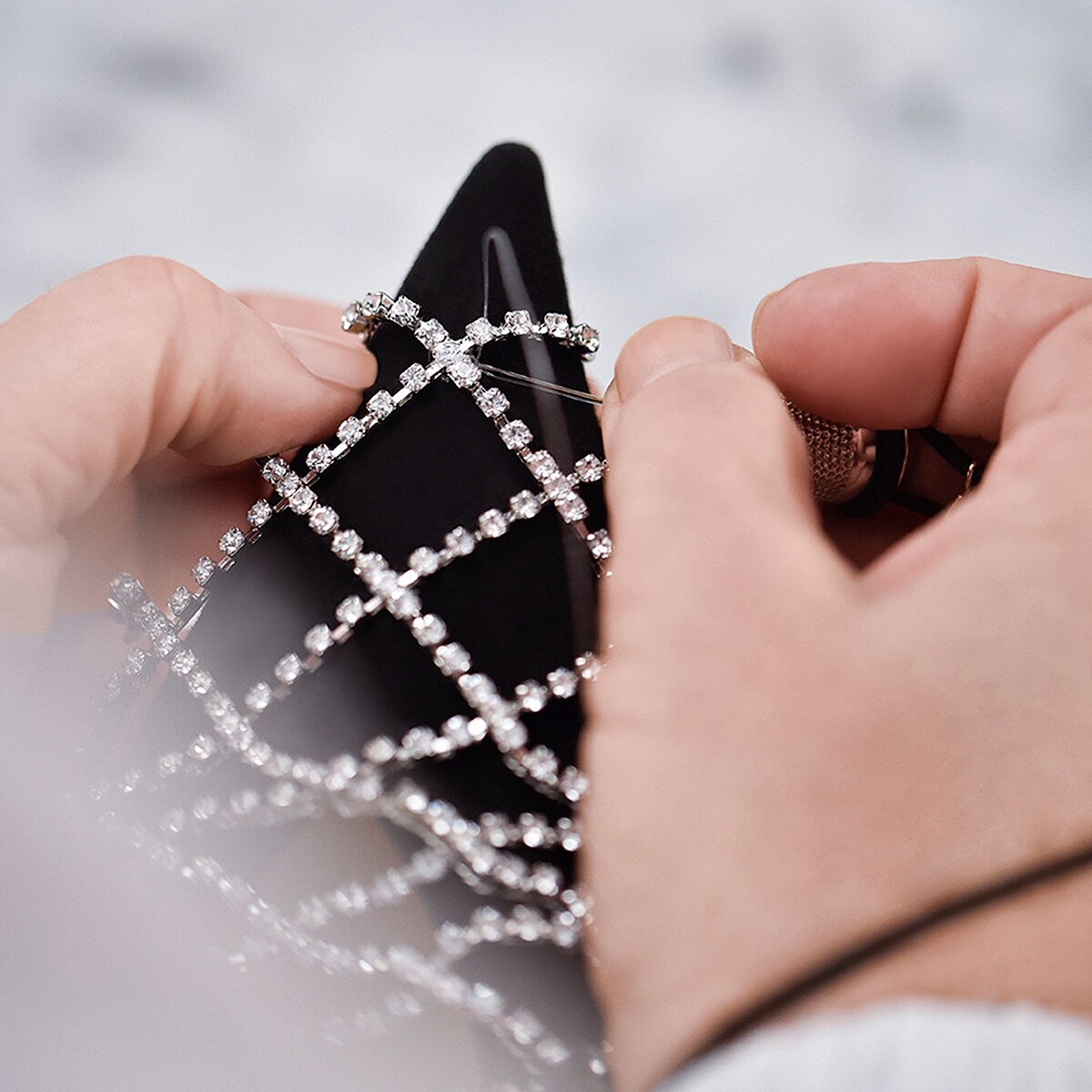要擁有這樣的極致質感,尤其是水晶垂墜在腳背上的自然垂墜感,實際上需要使用 1850 顆水晶製作成的鏈條才能達成,鳥籠輪廓的造型更是考驗工匠的技巧與經驗。