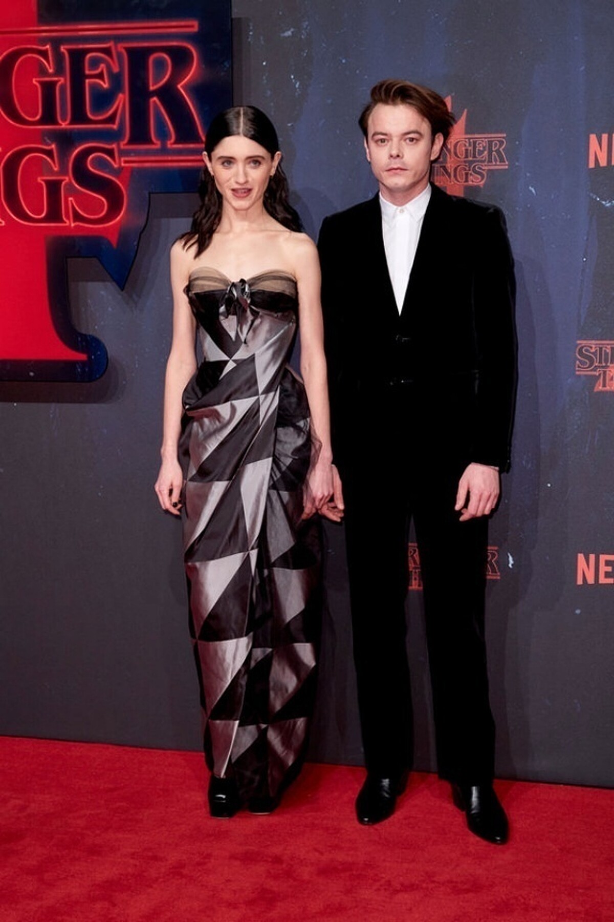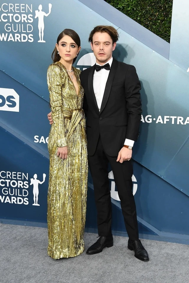 Charlie Heaton 和 Natalia Dyer 身為演員時常要出席各大頒獎典例和紅毯,因此浮誇禮服也成為兩人約會必備的單品之一。值得一題的是,男友 Charlie Heaton 多半在紅毯上都會選擇暗色系的成套西裝,一方面是展現成熟男人味,另一方面則是要襯出女友風采!由於 Natalia Dyer 多喜歡身穿配色亮眼的禮服來襯托其白皙肌膚,若是兩人都以花俏打扮現身,看上去就會顯得雜亂不契合,不知道誰才是主角。只能說細節都全方位顧到的兩位太厲害!