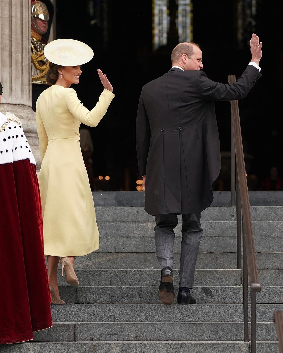 連續四天的白金禧慶祝活動,凱特王妃、威廉王子、喬治王子、夏綠蒂公主和路易王子多次亮相,其中一天凱特王妃穿著Emilia Wickstead鵝黃色連衣裙,搭配同色禮帽,與威廉王子一同現身。