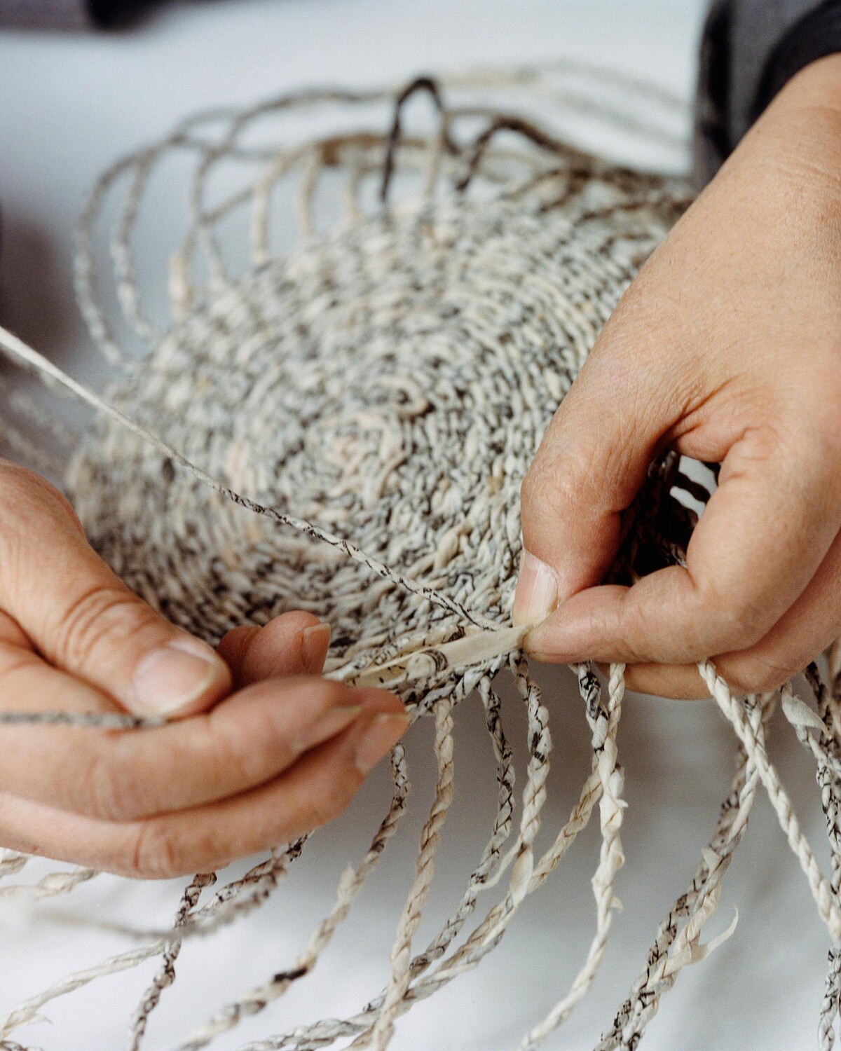 來自韓國的傳統工藝,Loewe找上Young Soon Lee來合作,研究如何用回收的舊報紙再製成耐用的材質,進而編織成日用提包。