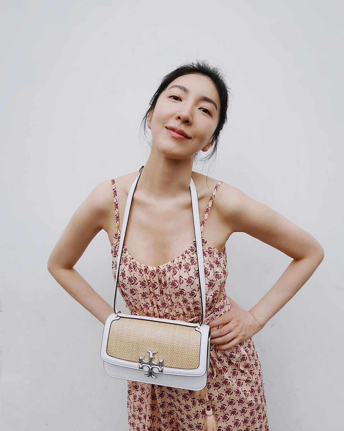 若想要日常上班、約會也可以使用的包款,則可以參考Eleanor肩背包,麥稈編織搭配白色牛皮製作,視覺效果超降溫。