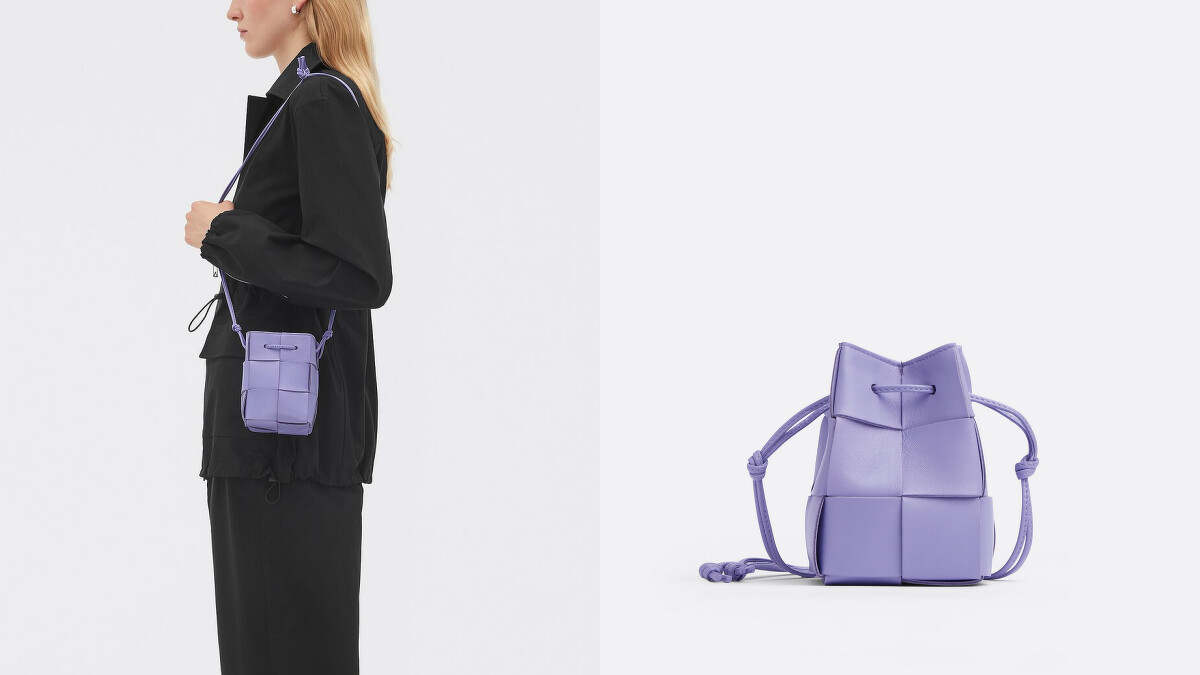 mini Cassette水桶包今夏新色是一抹療癒的薰衣草紫色,窄小的包身,除手機以外,其他外出品皆可收進。