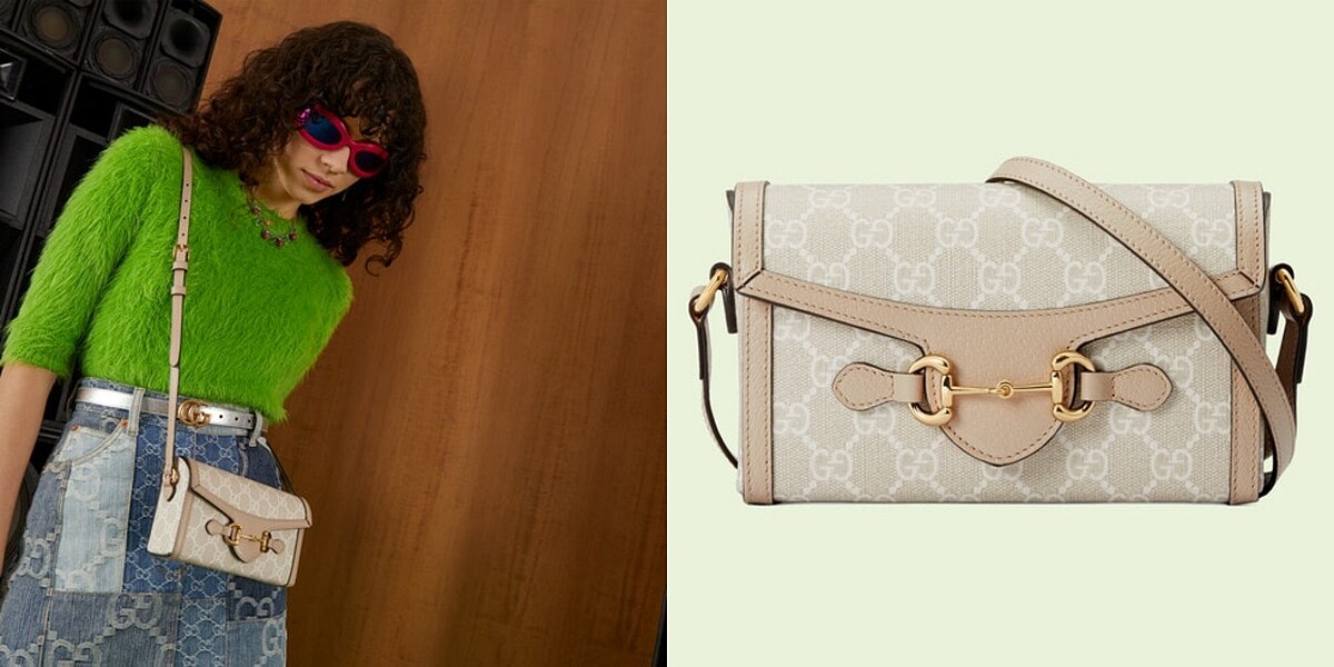 Horsebit 1955全新的長方形小包尺寸,俐落的線條易融於各式風格的服裝與造型,可調式的肩背帶友善小隻女嬌小身形,外出必需品可全收進。
