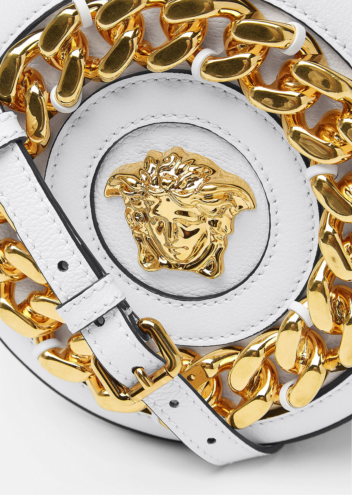 La Medusa系列包款,多以高閃的富豪金來呈現梅杜莎的頭像標誌,讓包包自帶飾品一般的亮眼效果。