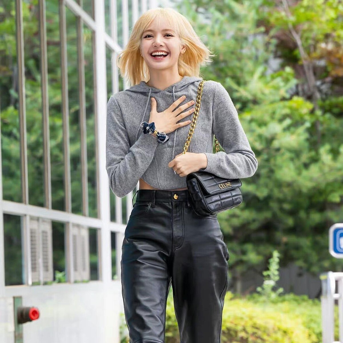 舒適又時髦的關鍵就在於服裝的面料與剪裁細節,Lisa身上的大學T即是最佳典範。大學T為CELINE 2022秋冬新款,展現腰線的特殊剪裁,褪去帽T慵懶印象,搭配上皮製長褲,個性之餘相信在長途旅行中也是相當方便活動。