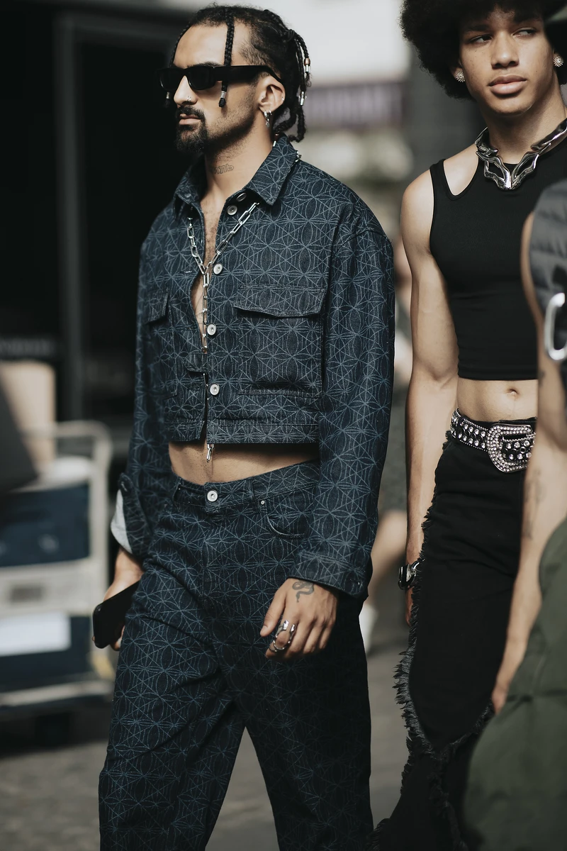 中性時代,男生也可以穿著小露性感的短版外套,打破性別界線,展現自己的風格。