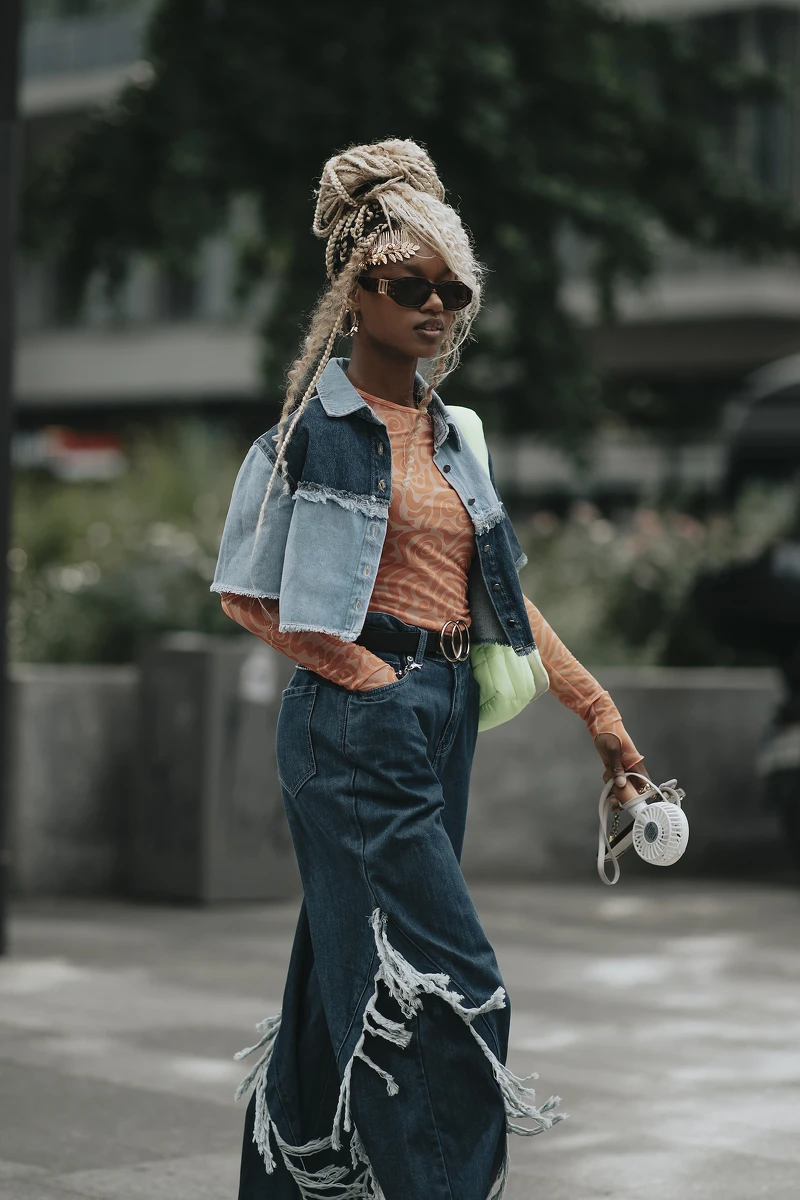 炎炎夏日,近其伸展台上短版剪裁的外套是妳衣櫃中的必備單品,短版剪裁無論搭配寬版褲還是窄管褲都能輕易展現好比例,不妨參考 MSGM 2022 春夏的示範造型,運用印花聚焦整體重點。