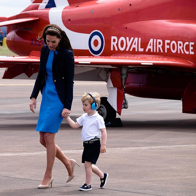 其他此類的親子裝示範,還有凱特王妃用同樣顏色的西裝外套來搭配喬治王子的小短褲。