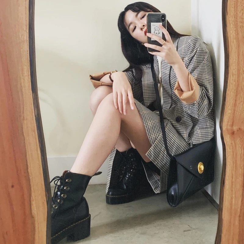 風格相當百變的徐嬌,除了氣質、甜美的路線,簡約幹練同樣在行,像是棕色襯衫搭配牛仔裙,再罩上一件千鳥紋西裝外套;又或是簡單素Tee、短褲搭配格紋外套,皆營造出俐落、率性的氛圍。