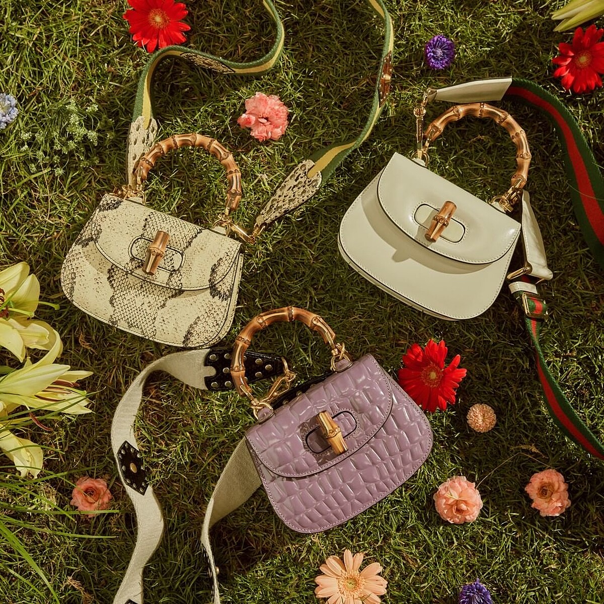 不論是Gucci Bamboo 1947、Diana方形竹節包,皆推出繽紛色選和多元尺寸,Gucci Bamboo 1947有中型、小型和迷你尺寸,均附傳統皮革背帶、條紋織帶背帶,可增加造型的豐富性;Diana方形竹節包則有大、中、小型尺寸供選擇,另附有一款同色皮革背帶,方便出席不同場合的搭配需求。