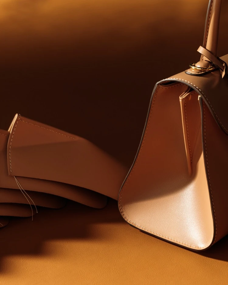 一個Brillant的誕生,須由64片皮革分割片和五金零件組合而成,從裁切、縫製到組裝至少要花費8小時,反轉手柄的接縫處,讓手提把拎起來更加舒適,注重美一處的細節,奠定Brillant手袋的不凡地位。