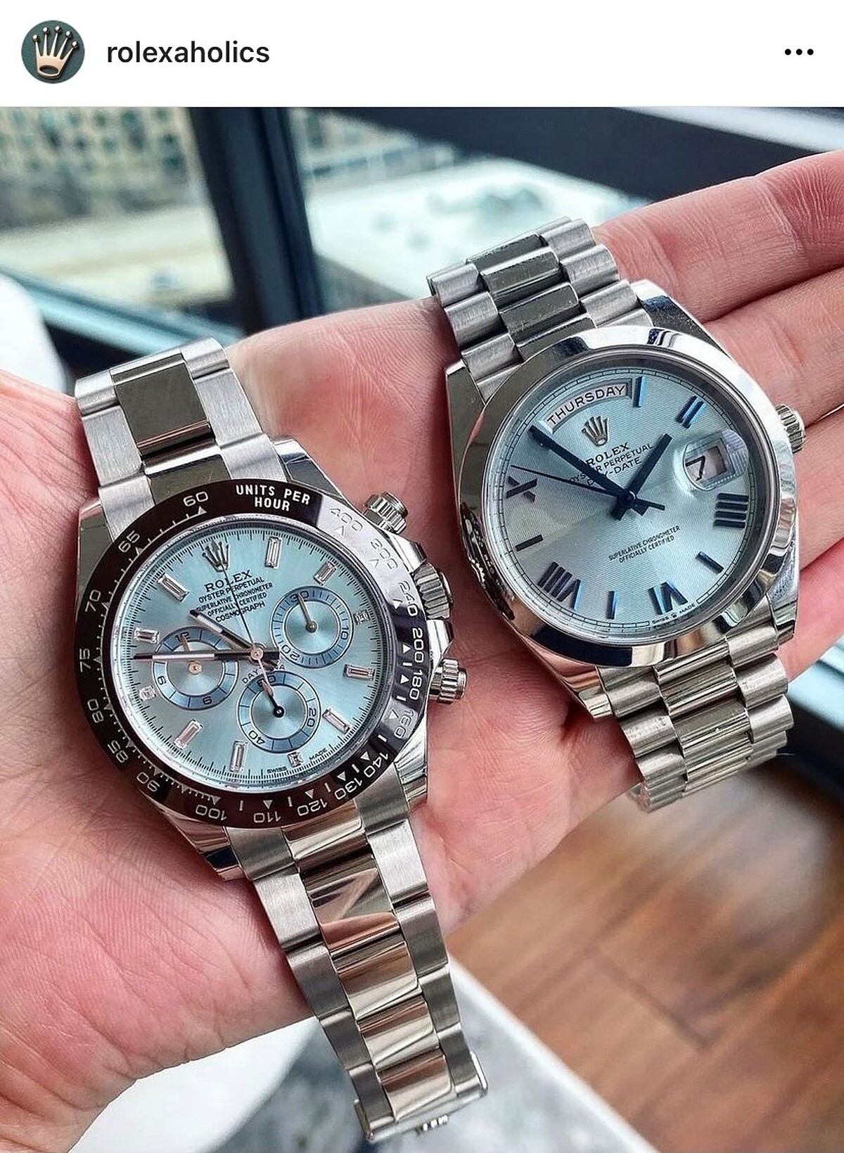 一:「冰藍色」面盤是勞力士鉑金材質腕錶的專屬色,且僅用於Day-Date及Cosmograph Daytona款式