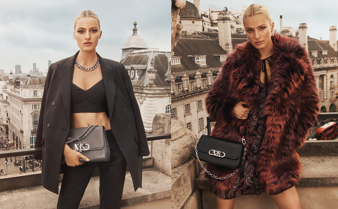 2022秋冬,Michael Kors更以摩登都會、假日必備、流金復古等三大元素出發,渴望在各國疫情趨緩之後,再度開啟品味風尚女子自由穿梭於世界城市間的自信冒險,同時更從紐約帝國大廈的Art Deco幾何線條及對稱美感擷取靈感,創作出全新的Empire Logo,讓本季登場的包款、鞋款,透過流露簡潔奢華的裝飾藝術風格金屬Logo,幻化出綻放在紐約最美天際線之間的金色閃耀光芒!