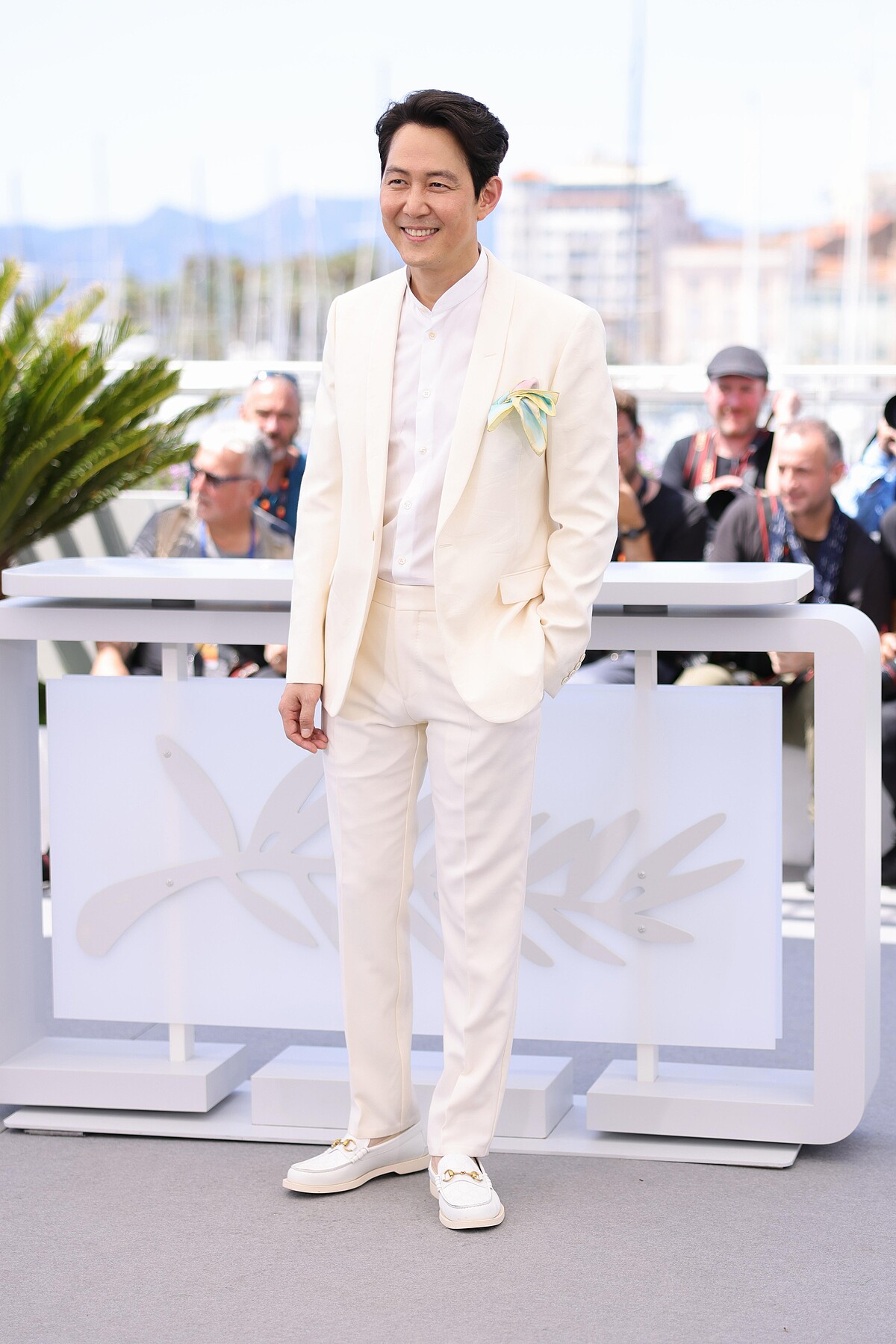 日前在坎城影展時,李政仔選擇Gucci黑色西裝出席,全黑色系的單品,加上個性黑靴,整個人宛如黑馬王子的化身。當完黑馬王子後,李政宰搖身一變成為白馬王子,全白色的西裝裝束,腳踩Gucci馬銜釦皮鞋,展現出紳士的一面。