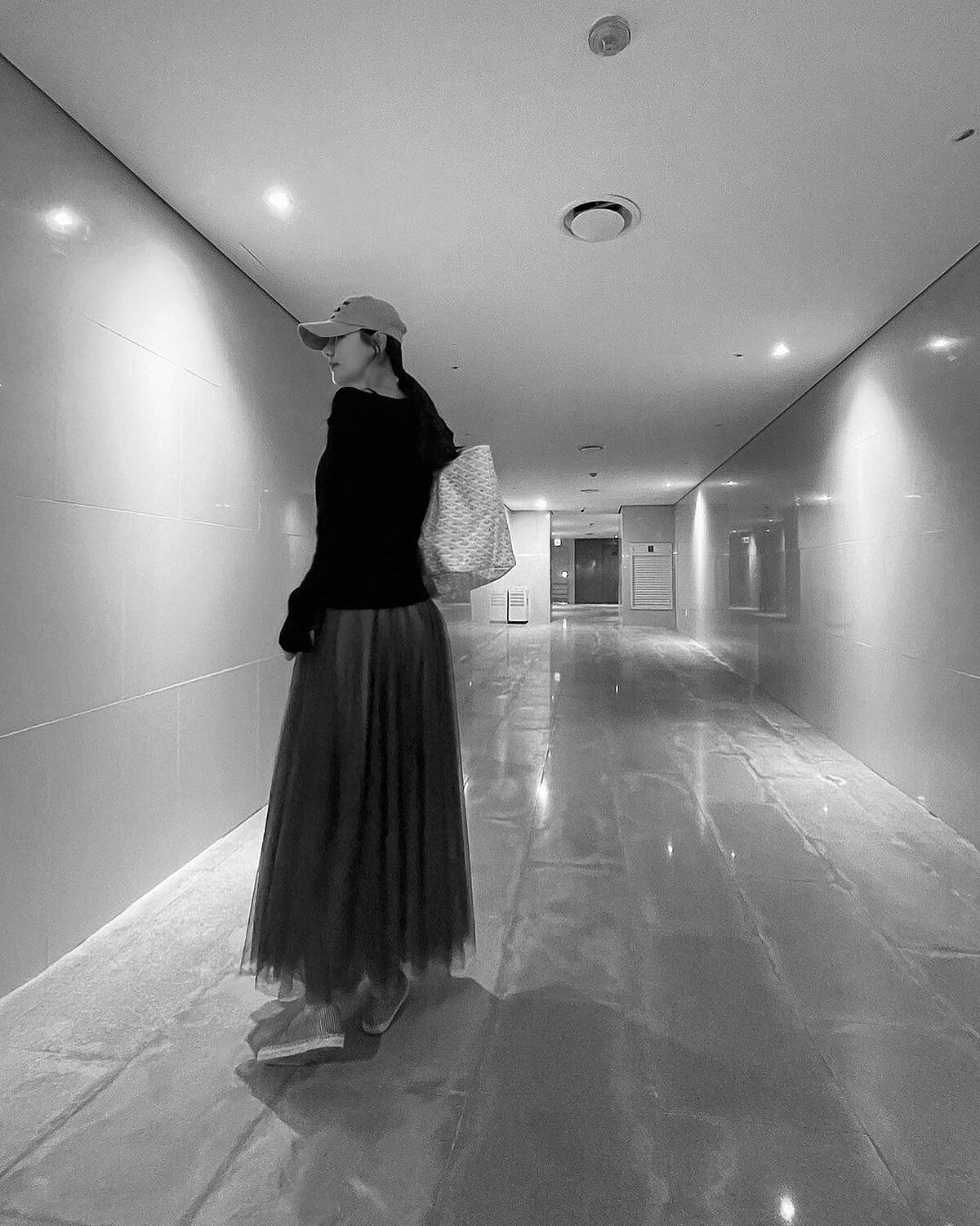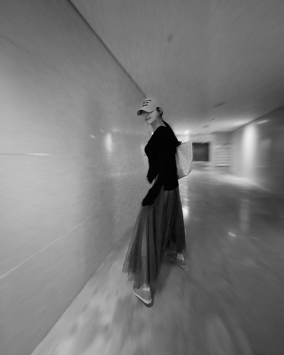 混搭個性示範再加一!自帶公主光暈、氣質又夢幻的紗裙,秋瓷炫以一件簡單的黑色上衣搭配,隨性的帆布鞋與老帽加乘出個性小女人的魅力。