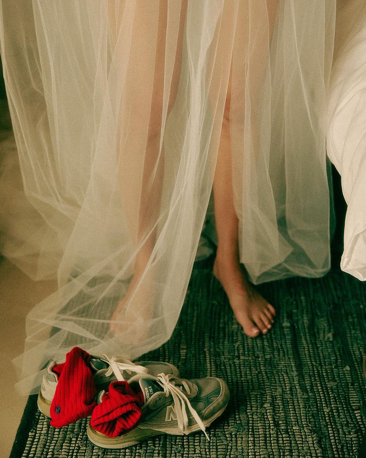 透膚白紗、裸雙足,一旁待命的,是連賈伯斯都愛穿的New Balance NB993GL球鞋,可能連粉絲都沒想到,孔曉振會在自己的婚禮上,選擇New Balance球鞋當作婚鞋,也因此,這雙NB993GL一戰成名。沒有人規定穿婚紗就一定得配高跟鞋,孔曉振也並非始祖,接下來帶大家回顧,愛把球鞋當成婚鞋的女星。