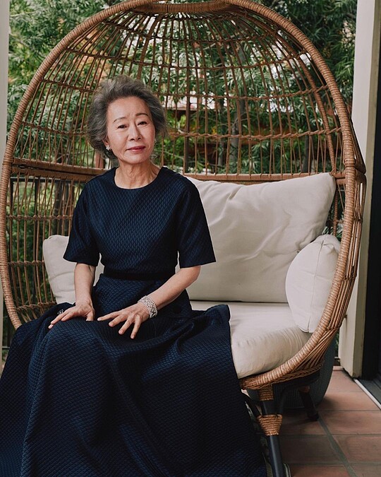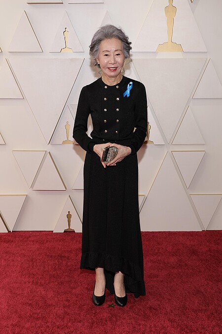 受邀擔任第94屆奧斯卡頒獎人的尹汝貞,特別換上Chanel 2021秋冬女裝系列的黑色雙排釦洋裝現身。