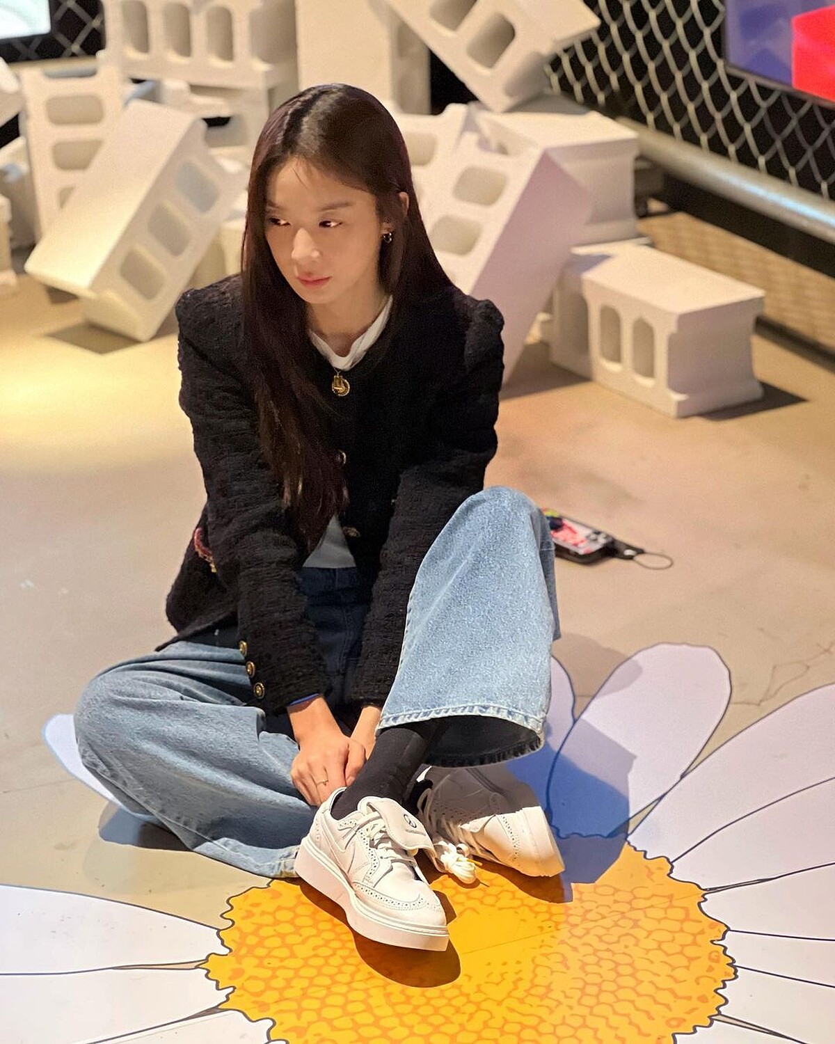 不要以為李清娥只會帥,天生麗質的歐逆穿上針織毛衣、開襟外套搭配牛仔直筒褲,就能展現出韓系小姐姐氣質的一面。