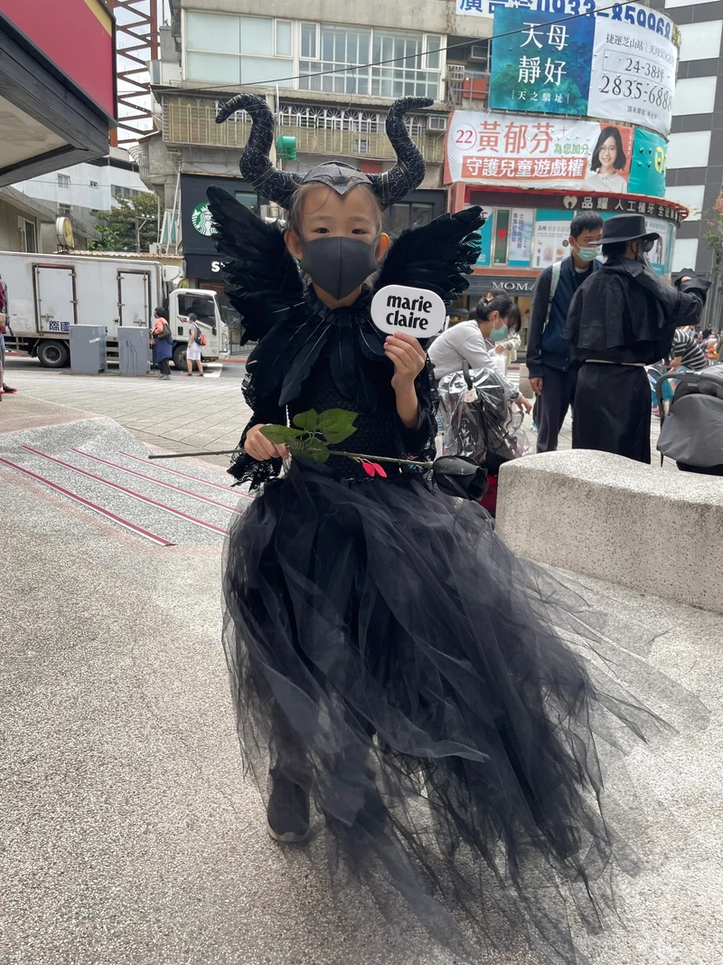看過美麗與黑暗兼具的《黑魔女》這反派腳色,其實也只是面惡心善的偽裝。遠遠就看到這一身美麗裝扮的小女孩,黑色的紗裙搭配《黑魔女》黑色翅膀,冷酷而美麗。另外同樣也是女巫團體,這三個好朋友從一個月前就開始規劃她們的裝扮,從妝髮到服飾一點都不馬虎。