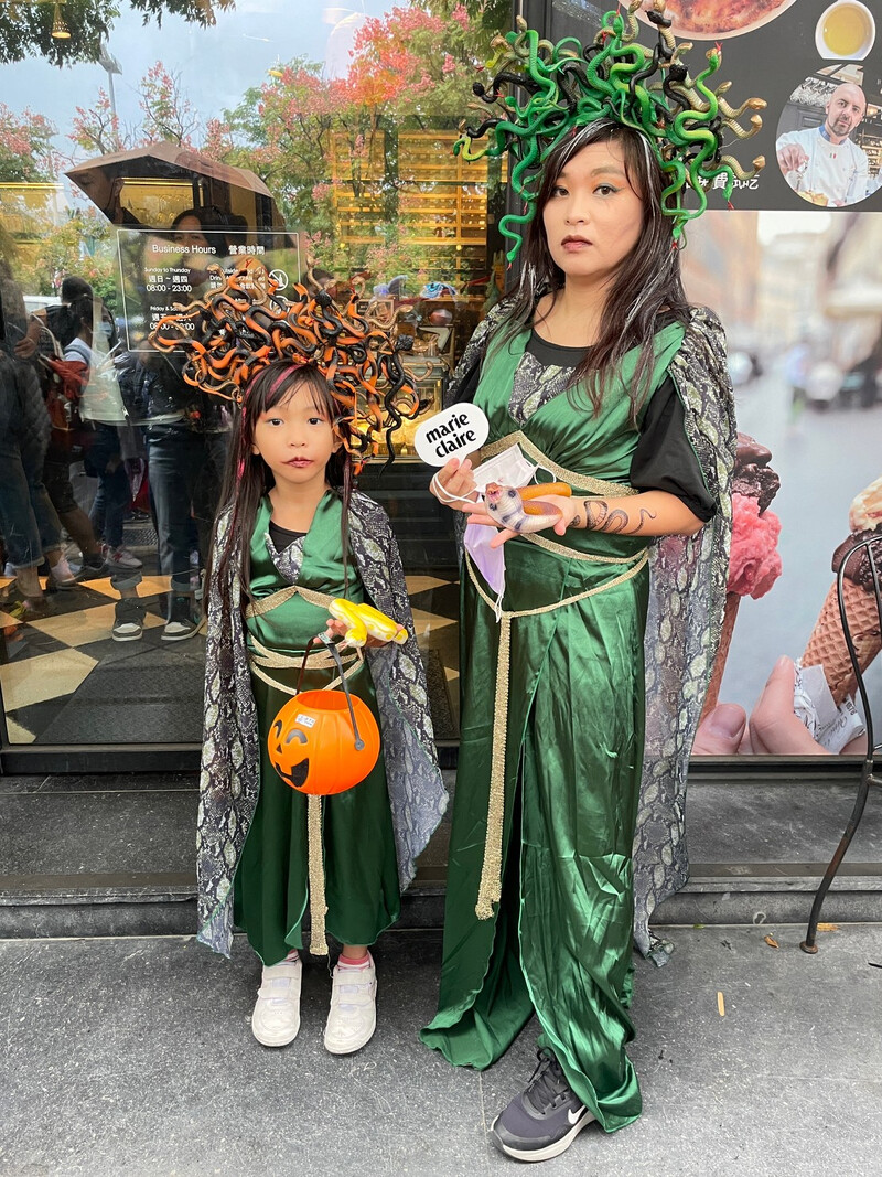 暗黑腳色再來一組,古希臘神話中傾國傾城以至於遭到詛咒的蛇髮女妖梅杜莎,在媽媽的手巧奪精工之下維妙維肖的蛇髮與神話中如出一轍,母女倆的美麗彷彿看一眼就真的會被石化。