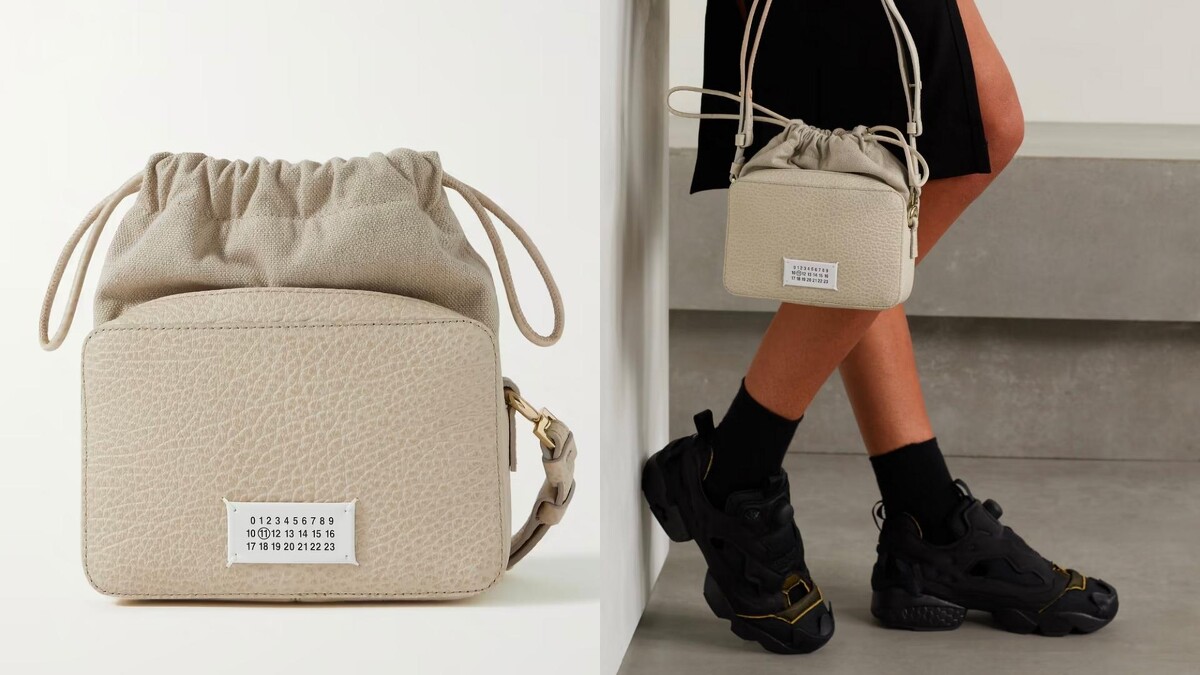 - MAISON MARGIELA 5AC棉質混紡帆布邊飾紋理皮革迷你相機包