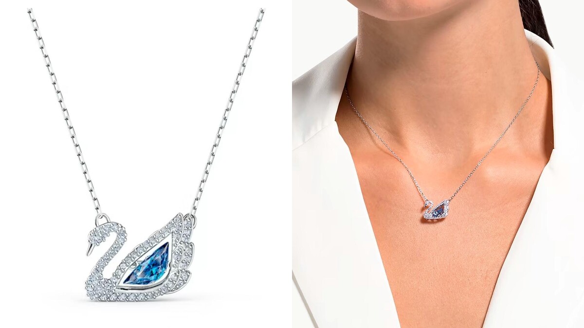 - Dazzling Swan 項鏈 天鵝, 藍色, 鍍白金色